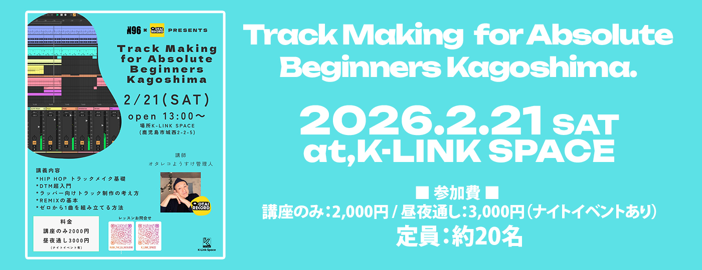 1F cafe 1Fに常設しているCafeになります 2F ROOM紹介 2Fの2ROOMの紹介 3F ROOM紹介 3Fの2ROOMの紹介 NEWS MORE 2026年2月20日 Baby Massage Lesson 2026年2月20日 GEEK DELIGHTSによるDJ練習会&交流会 2026年2月4日 Track Making for Absolute Beginners Kagoshima 2026年2月4日 月曜日の朝 自分を整える 2026年1月24日 日本の反対側ジャマイカで生まれたレゲエ&ダンスホールについて学ぼう