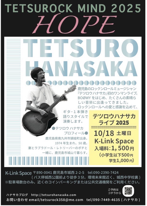ロックンロールへの愛と感謝を込めて、ギター1本弾き語りスタイルで演奏します。