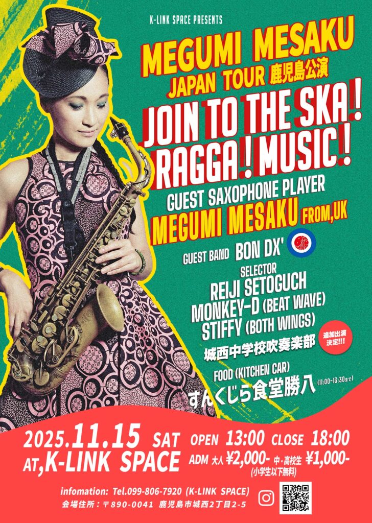 UKで活躍するサックスプレーヤーMegumi Mesakuの来日鹿児島公演をここK-Link Spaceにて開催!